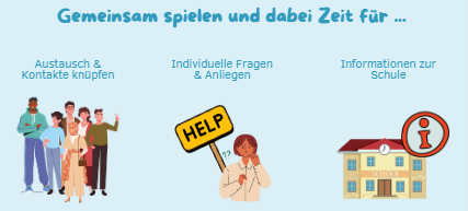 Es gibt kostenlosen Kaffee, Tee und Kuchen. An allen Terminen bieten wir verschiedene Spiele an. Das gemeinsame Spielen macht viel Freude. Es sind immer eine Lehrkraft und zwei Mitglieder des Elternrats vor Ort, die gerne Fragen rund um die Themen Lernen, Schule und Erziehen beantworten und bei Bedarf beraten.