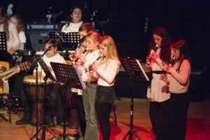 Ganz besonders versüßten uns dieses Jahr unsere JeKi-Schüler:innen aus dem Jahrgang 4 die Vorweihnachtszeit beim Auftritt auf dem alljährlichen GSH-Weihnachtskonzert in der Friedrich-Ebert-Halle. Hoch professionell und mit Leidenschaft wurden auf der großen Bühne Saiten gezupft und gestrichen, Trommeln geschlagen und Flöte gespielt.